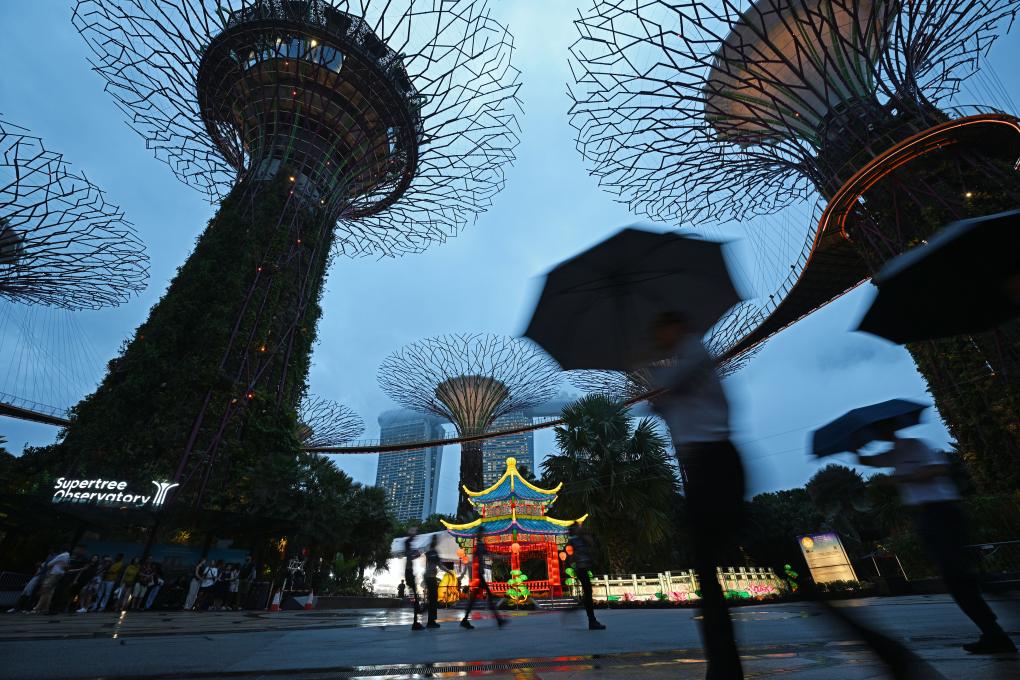 SINGAPUR, 22 septiembre, 2023 (Xinhua) -- Imagen del 21 de septiembre de 2023 de personas visitando la exhibición de linternas del Festival de Medio Otoño que se celebra en los Jardines de la Bahía de Singapur. (Xinhua/Then Chih Wey)