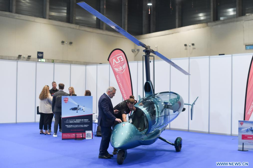 MADRID, 26 septiembre, 2023 (Xinhua) -- Imagen del 25 de septiembre de 2023 de visitantes observando una exhibición durante la Semana de la Integración del Espacio Aéreo de Madrid, en Madrid, España. La Semana de la Integración del Espacio Aéreo de Madrid se lleva a cabo del 25 al 28 de septiembre, centrándose en la gestión del tráfico aéreo y otras áreas. Productos como aeronaves no tripuladas y taxis aéreos y servicios como entrega urgente no tripulada son exhibidos durante el evento. (Xinhua/Gustavo Valiente)