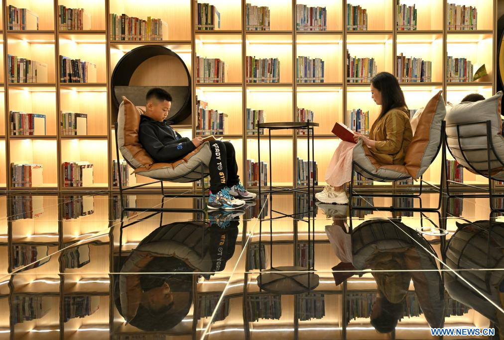 BEIJING, 29 septiembre, 2023 (Xinhua) -- Personas leen en un bar de libros en la antigua calle Xinglong, en el distrito de Xuan'en, en la provincia de Hubei, en el centro de China, el 29 de septiembre de 2023. El viernes marca el tradicional Festival de Medio Otoño de este año en China, que se celebra de diversas formas, que van desde reuniones familiares con grandes banquetes hasta reuniones públicas con ceremonias tradicionales, actuaciones y la gala del Medio Otoño. (Xinhua/Chen Xukai)