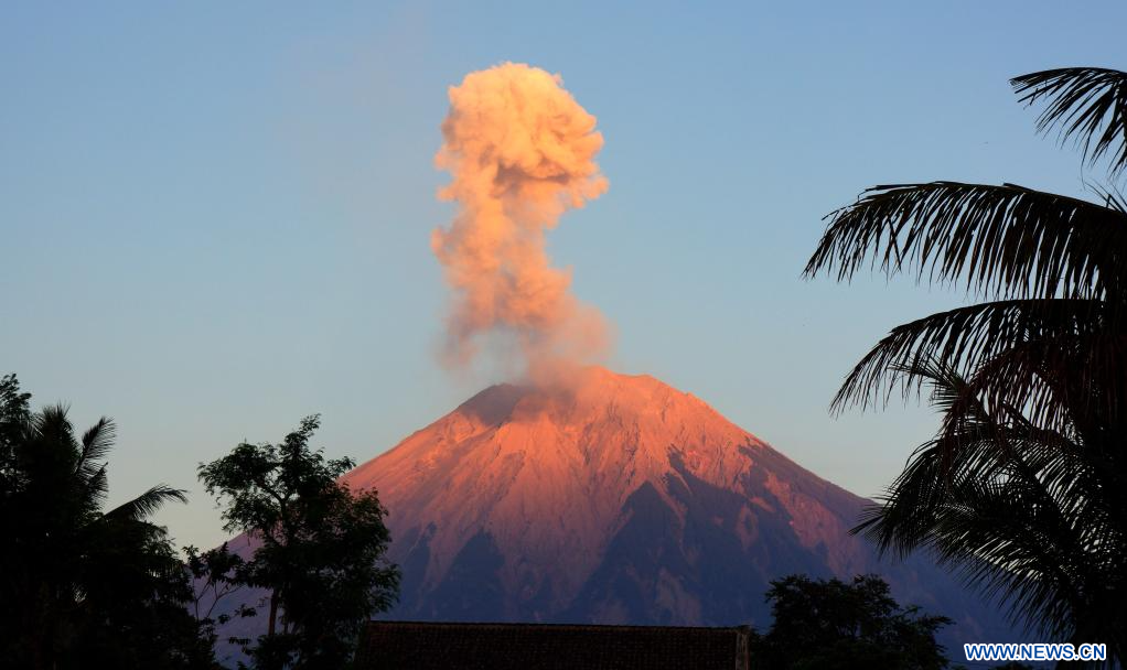 LUMAJANG, 3 octubre, 2023 (Xinhua) -- Imagen del 1 de octubre de 2023 de materiales volcánicos arrojados desde el monte Semeru visto desde Lumajang, Java Oriental, Indonesia. (Xinhua/Dwi Sasongko)