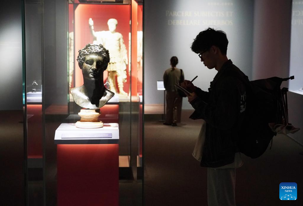 BEIJING, 2 octubre, 2023 (Xinhua) -- Personas visitan una exposición sobre la antigua civilización romana en el Monumento del Milenio de China, en Beijing, capital de China, el 2 de octubre de 2023. Personas de todo el país participan en actividades culturales para enriquecer su vida vacacional durante las vacaciones por el Día Nacional. (Xinhua/Ren Chao)
