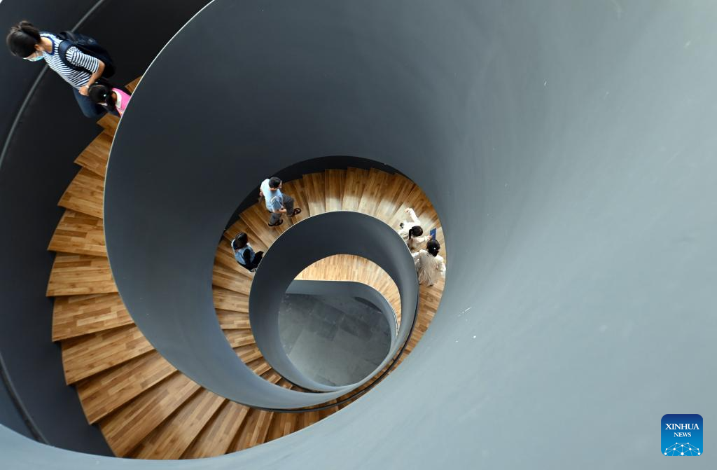 BEIJING, 2 octubre, 2023 (Xinhua) -- Imagen del 1 de octubre de 2023 de personas visitando el Museo de Arte de Anhui, en Hefei, en la provincia de Anhui, en el este de China. Personas de todo el país participan en actividades culturales para enriquecer su vida vacacional durante las vacaciones por el Día Nacional. (Xinhua/Zhou Mu)
