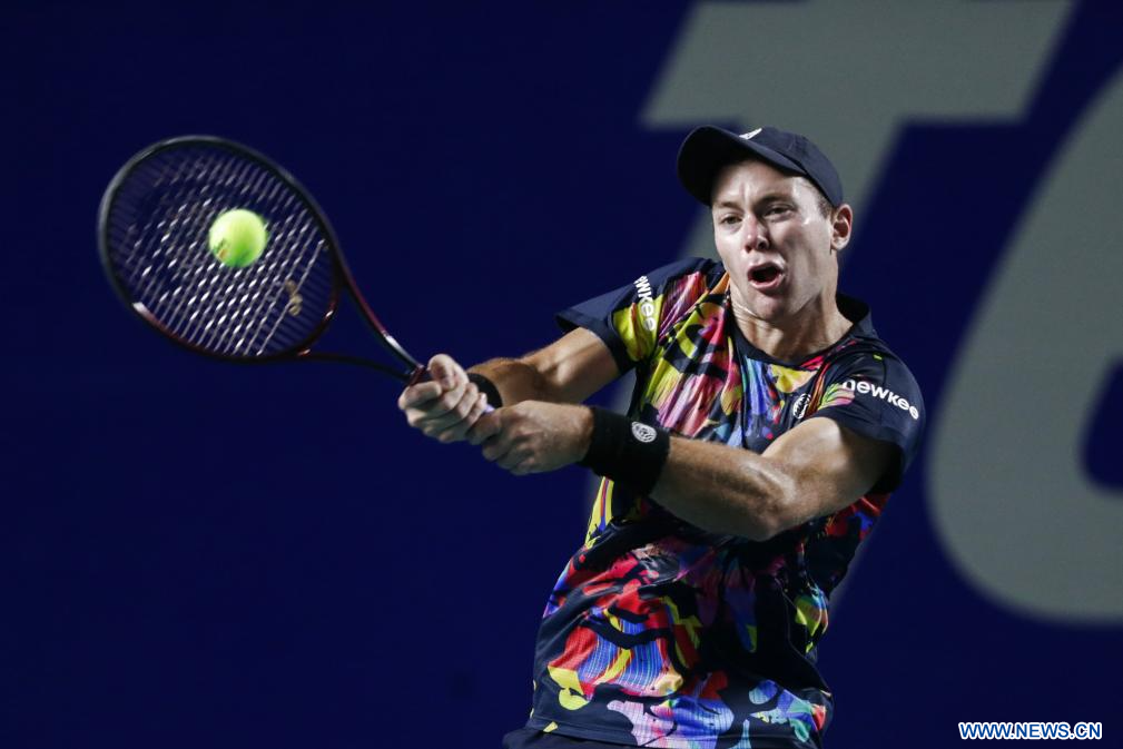 ACAPULCO, 1 marzo, 2024 (Xinhua) -- Imagen del 29 de febrero de 2024 de Dominik Koepfer, de Alemania, devolviendo la pelota durante el partido de cuartos de final individual masculino entre Holger Rune, de Dinamarca, y Dominik Koepfer, de Alemania, en el torneo de tenis Abierto Mexicano 2024 de la ATP, en Acapulco, México. (Xinhua/Francisco Cañedo)