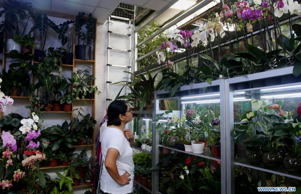 LIMA, 22 febrero, 2024 (Xinhua) -- Una vendedora arregla plantas para su venta en un puesto en el mercado de flores Oasis, en el distrito de San Juan de Miraflores, en Lima, Perú, el 22 de febrero de 2024. (Xinhua/Mariana Bazo)
