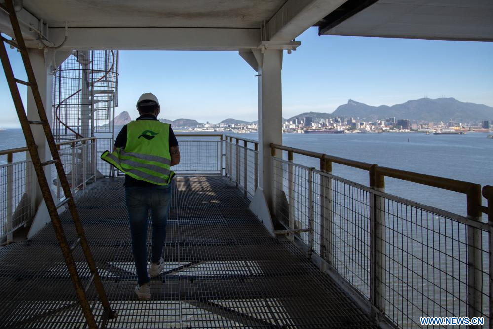 RÍO DE JANEIRO, 4 marzo, 2024 (Xinhua) -- Un agente de la Agencia Nacional de Transportes Terrestres realiza una inspección en el Puente Presidente Costa e Silva, también conocido como Puente Río-Niterói, durante el 50° aniversario de su inauguración, en la Bahía de Guanabara, en Río de Janeiro, Brasil, el 4 de marzo de 2024. (Xinhua/Claudia Martini)