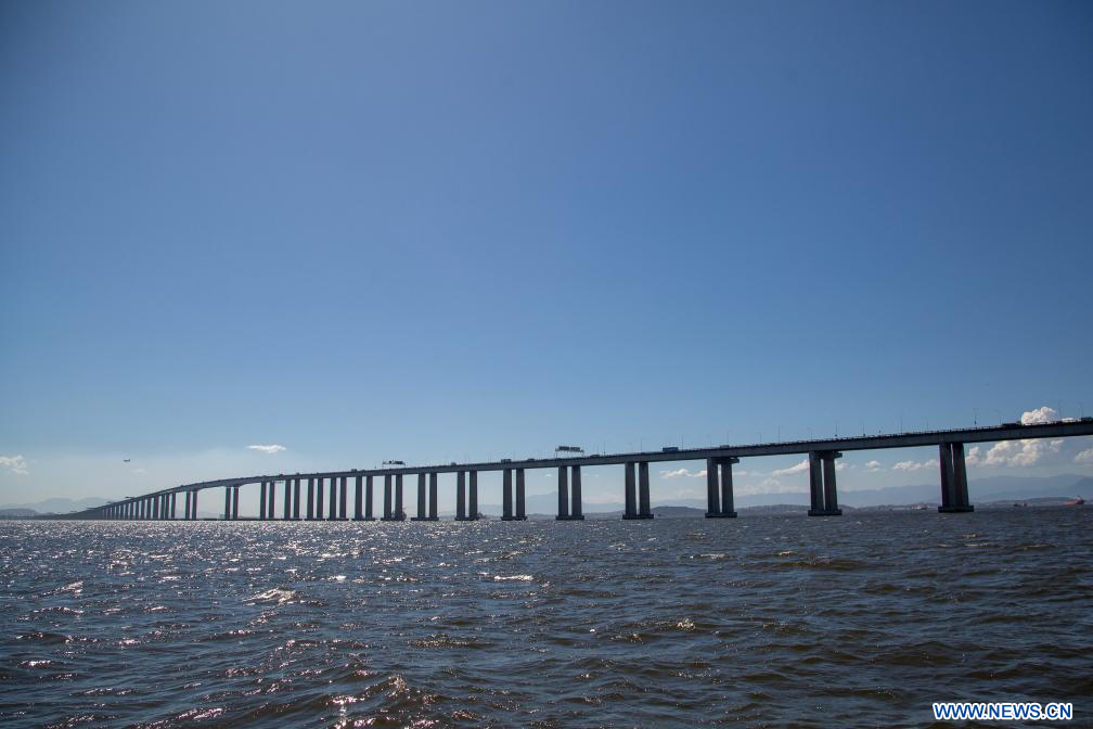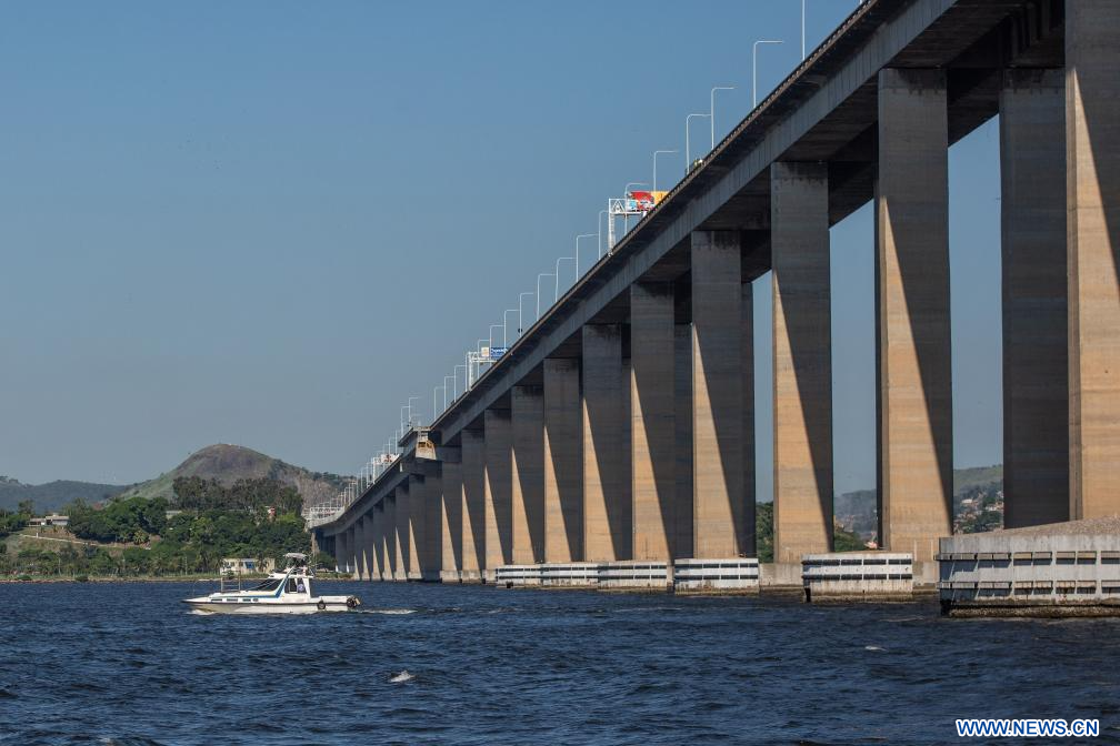 RÍO DE JANEIRO, 4 marzo, 2024 (Xinhua) -- Imagen del 4 de marzo de 2024 de los pilares de concreto del Puente Presidente Costa e Silva, también conocido como Puente Río-Niterói, durante el 50° aniversario de su inauguración, en la Bahía de Guanabara, en Río de Janeiro, Brasil. (Xinhua/Claudia Martini)