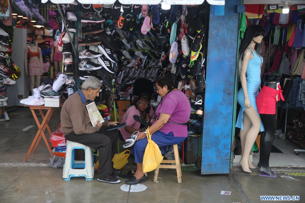 LIMA, 26 febrero, 2024 (Xinhua) -- Personas se prueban calzado en una tienda de una calle comercial, en el distrito de Chorrillos, en el sur de Lima, Perú, el 26 de febrero de 2024. (Xinhua/Mariana Bazo)