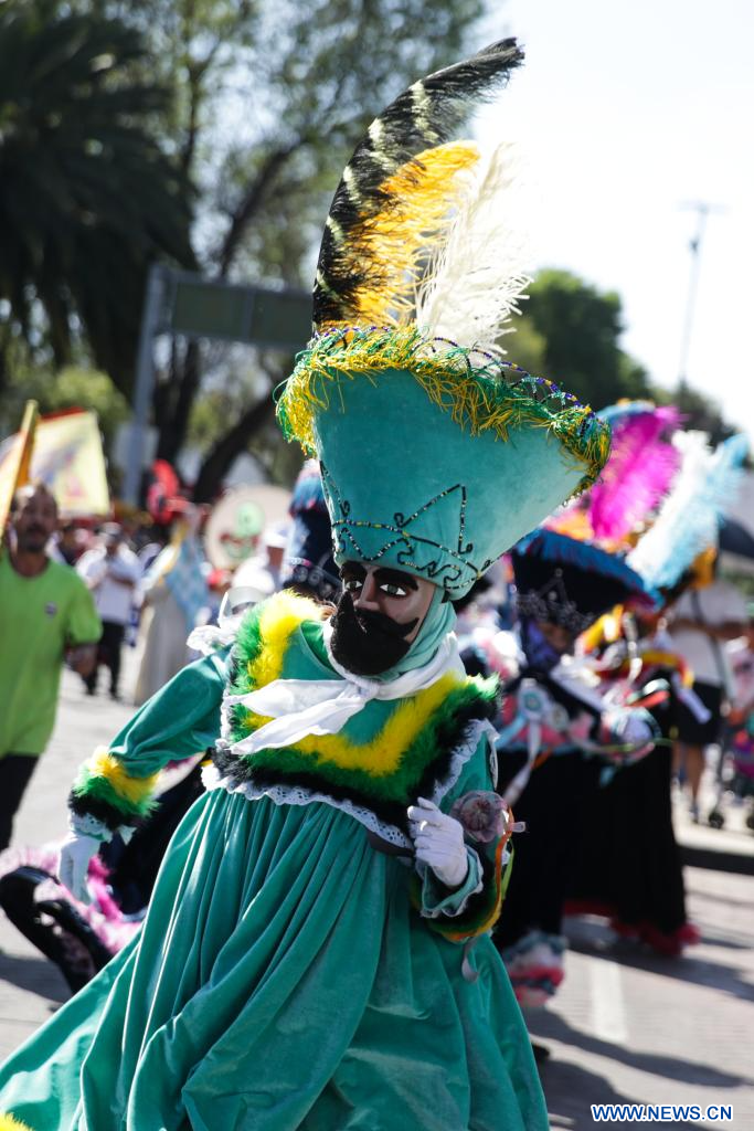 CIUDAD DE MÉXICO, 9 marzo, 2024 (Xinhua) -- Imagen del 8 de marzo de 2024 de personas disfrazadas participando en el Carnaval de Xochimilco 2024, en Xochimilco, en la Ciudad de México, México. Los desfiles de carnaval han sido una larga tradición en el pequeño poblado suburbano de Xochimilco, en la capital mexicana, donde los participantes en trajes exóticos, máscaras y sombreros bailan al ritmo de la música en las calles. (Xinhua/Francisco Cañedo)