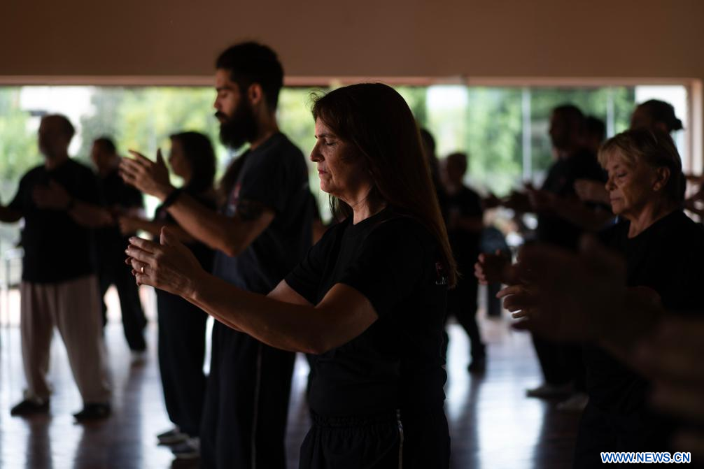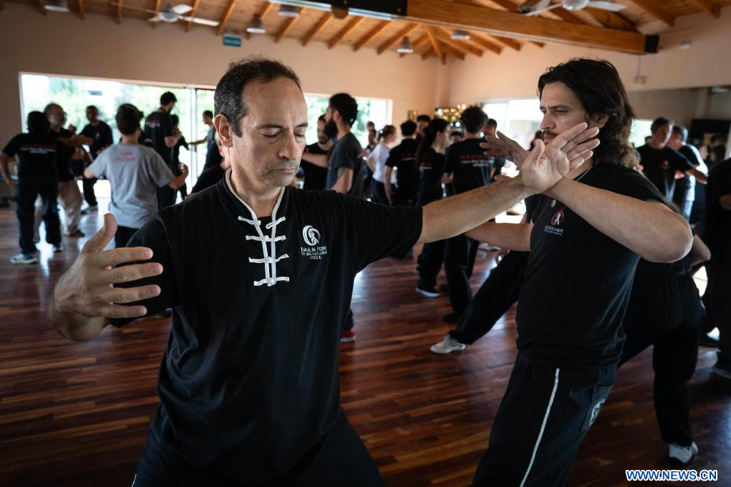 - Imagen del 8 de marzo de 2024 de alumnos de la Chen Bing Taiji Academy Argentina, participando en un seminario de Tai Ji Quan, también conocido como Tai Chi, impartido por el maestro Chen Bing, en la ciudad de Buenos Aires, capital de Argentina. El Tai Ji Quan, también conocido como Tai Chi, es un arte marcial chino que tiene un desarrollo creciente en Argentina, lo cual quedó en evidencia mediante un exitoso seminario realizado en Buenos Aires a cargo del maestro chino Chen Bing. (Xinhua/Martín Zabala)