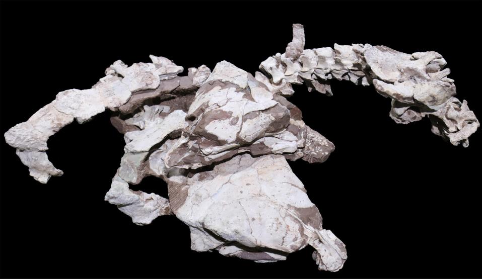BEIJING, 1 marzo, 2024 (Xinhua) -- Imagen del 25 de febrero de 2024 cedida por el equipo de investigación de fósiles de una nueva especie de dinosaurio acorazado "Datai yingliangis". (Xinhua)