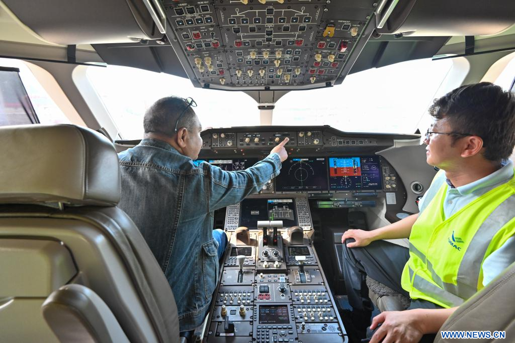KUALA LUMPUR, 13 marzo, 2024 (Xinhua) -- Imagen del 13 de marzo de 2024 de la cabina de un avión comercial C919, fabricado por Commercial Aircraft Corporation of China, Ltd. (COMAC), en el Aeropuerto Sultan Abdul AzizShah, en el estado de Selangor, Malasia. La exhibición estática y el vuelo de demostración de los aviones comerciales ARJ21 y C919 fabricados en China se llevaron a cabo aquí el miércoles. (Xinhua/Chong Voon Chung)