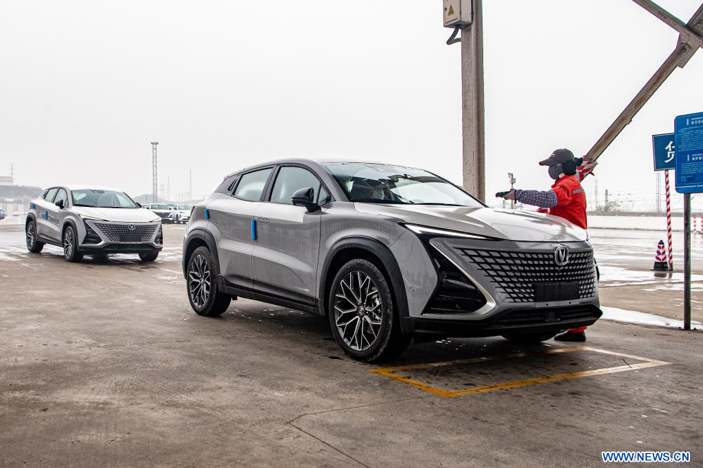 CHONGQING, 7 marzo, 2024 (Xinhua) -- Imagen del 6 de marzo de 2024 de vehículos terminados esperando para ser exportados vía trenes de carga China-Europa en la Estación Yuzui, en el distrito de Jiangbei de la municipalidad de Chongqing, en el suroeste de China. En 2023, más de 110.000 vehículos terminados han sido exportados a través de los trenes de carga China-Europa que parten de Chongqing. Mientras tanto, la ciudad también fue testigo de un crecimiento significativo en las importaciones de automóviles terminados a través del servicio del tren de carga China-Europa. (Xinhua/Tang Yi)
