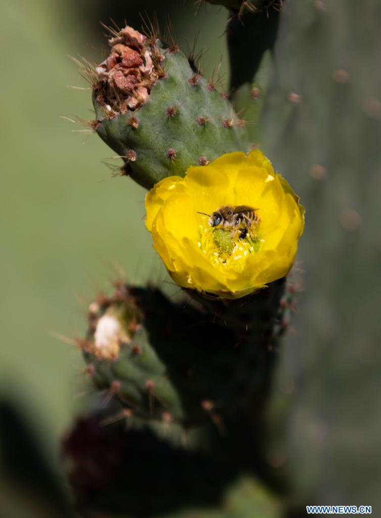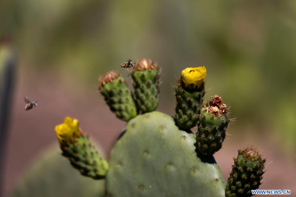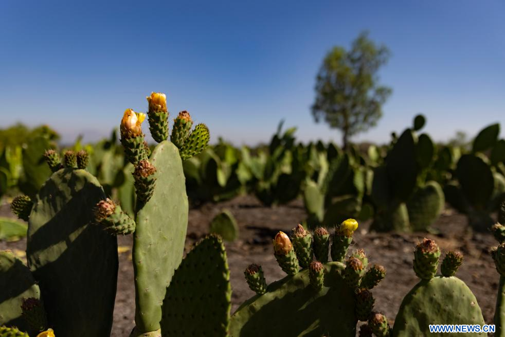 CIUDAD DE MÉXICO, 12 marzo, 2024 (Xinhua) -- Imagen del 11 de marzo de 2024 de flores de nopal, en Tetelco, en la Ciudad de México, capital de México. (Xinhua/Li Mengxin)