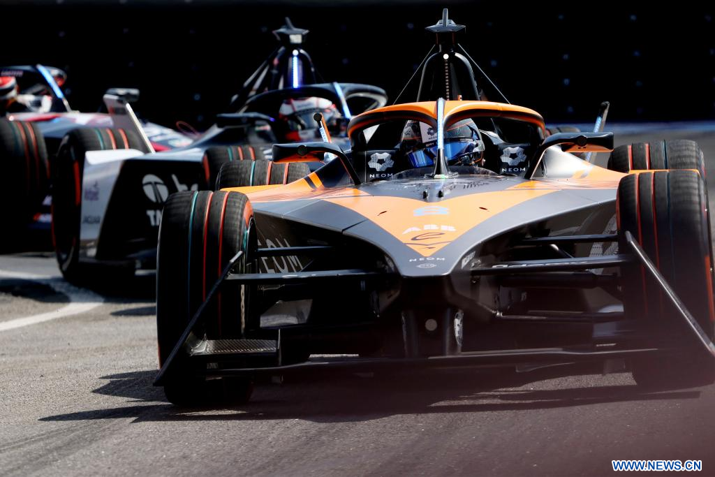 SAO PAULO, 16 marzo, 2024 (Xinhua) -- El piloto británico de la escudería Neom McLaren, Sam Bird (i), participa en el E-Prix de Sao Paulo de Fórmula E, en Sao Paulo, Brasil, el 16 de marzo de 2024. (Xinhua/Rahel Patrasso)
