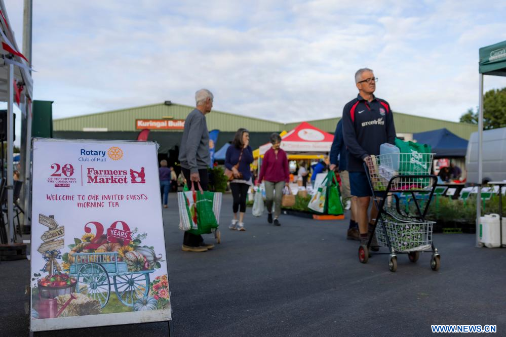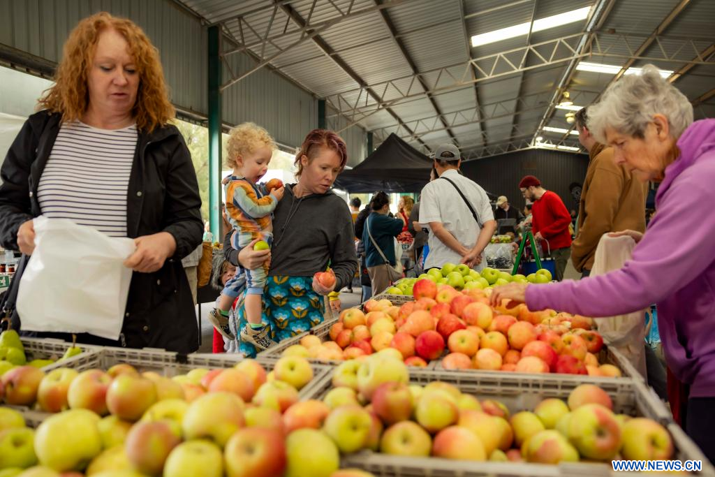 CANBERRA, 16 marzo, 2024 (Xinhua) -- Residentes compran frutas en el Mercado de Agricultores de la Región Capital en el Parque de Exposiciones, en Canberra, Australia, el 16 de marzo de 2024. Este año se conmemora el 20 aniversario del Mercado de Agricultores de la Región Capital. Todos los sábados por la mañana, el mercado reúne a más de 100 vendedores de toda Australia, con sus productos recién recolectados, cultivados y hechos a mano. (Xinhua/Chu Chen)