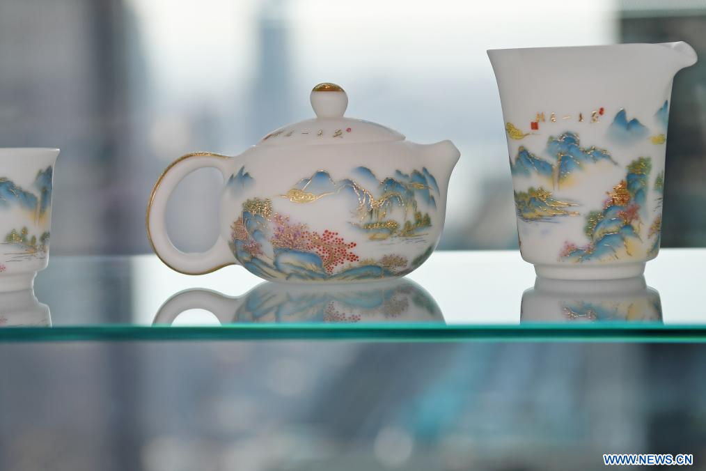 NUEVA YORK, 15 marzo, 2024 (Xinhua) -- Imagen del 14 de marzo de 2024 de un juego de té de porcelana Dehua presentado en la exposición internacional "Blanc de Chine - Dehua Porcelain", en Nueva York, Estados Unidos. Un evento de cinco días de duración para exhibir la porcelana blanca producida en el distrito de Dehua, en la provincia de Fujian, en el sureste de China, comenzó el jueves en Midtown, en la ciudad de Nueva York, con 105 obras maestras de porcelana Dehua expuestas. (Xinhua/Li Rui)