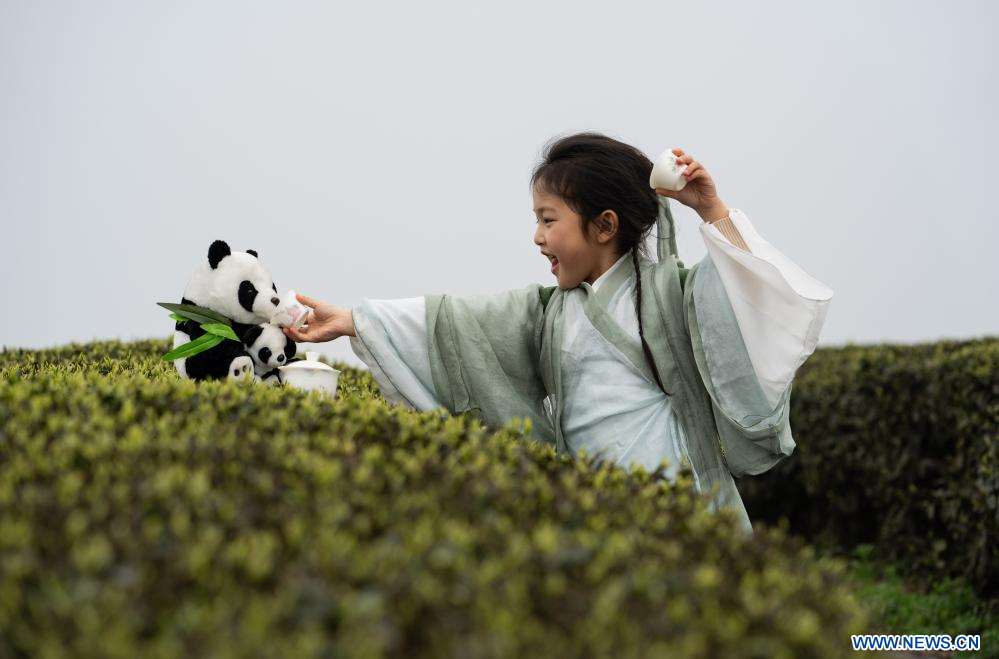 LUZHOU, 11 marzo, 2024 (Xinhua) -- Imagen del 10 de marzo de 2024 de una niña jugando en un jardín de té, en la aldea Dehong del distrito de Naxi, en la ciudad de Luzhou, en la provincia de Sichuan, en el suroeste de China. En los últimos años, el distrito de Naxi ha desarrollado vigorosamente la plantación de té a principios de primavera y ha promovido el desarrollo del turismo del té. Con una superficie total de plantación de té de 315.000 mu (21.000 hectáreas), el distrito de Naxi puede producir 23.000 toneladas de hojas de té al año, beneficiando a más de 5.600 hogares y cultivando más de 100 empresas de procesamiento de té. (Xinhua/Jiang Hongjing)