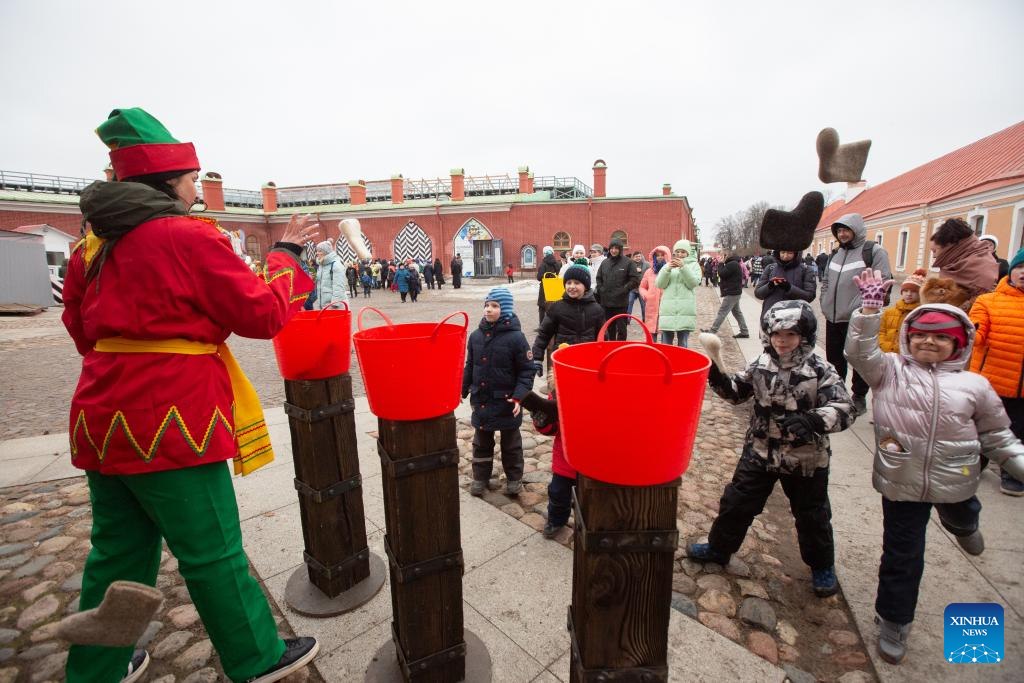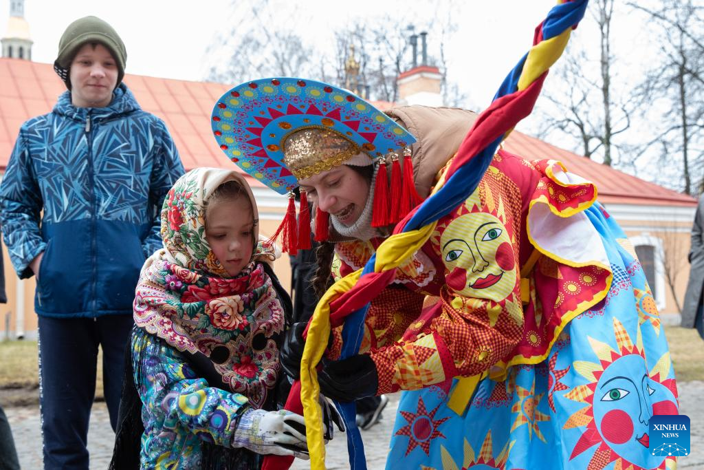 SAN PETERSBURGO, 18 marzo, 2024 (Xinhua) -- Imagen del 17 de marzo de 2024 de niños participando en un juego para celebrar la Maslenitsa, una festividad religiosa que marca el fin del invierno y el inicio de la primavera, en San Petersburgo, Rusia. (Xinhua/Irina Motina)
