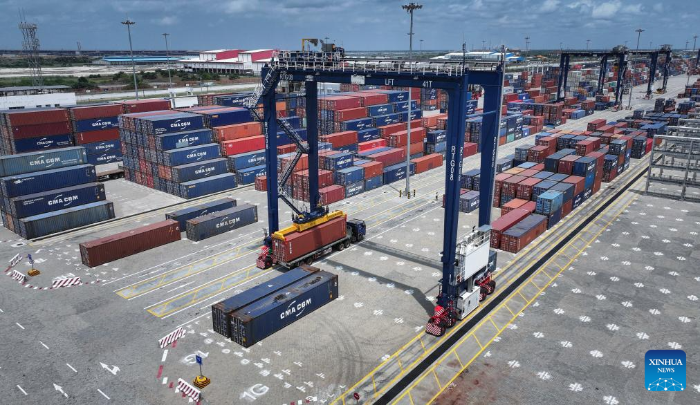 LAGOS, 12 marzo, 2024 (Xinhua) -- Imagen tomada con un dron el 1 de marzo de 2024 del puerto de Lekki, en Lagos, Nigeria. El puerto de Lekki es un proyecto de cooperación comercial entre China, Francia y Nigeria. Construido por la China Harbour Engineering Company Ltd (CHEC, por sus siglas en inglés), es el primer puerto marítimo de gran calado de Nigeria y uno de los más grandes de Africa occidental. La construcción, comenzada en junio de 2020, finalizó en octubre de 2022. El puerto inició operaciones comerciales en abril de 2023, con una capacidad de diseño para manejar 1,2 millones de contenedores estándar al año. (Xinhua/Han Xu)