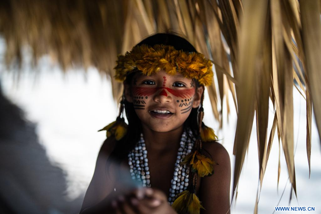 MANAOS, 15 marzo, 2024 (Xinhua) -- Imagen del 14 de marzo de 2024 de una niña indígena en un asentamiento, cerca de Manaos, capital del estado de Amazonas, Brasil. (Xinhua/Wang Tiancong)