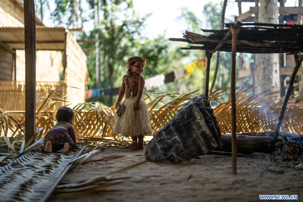 MANAOS, 15 marzo, 2024 (Xinhua) -- Imagen del 14 de marzo de 2024 de niños jugando en un asentamiento indígena, cerca de Manaos, capital del estado de Amazonas, Brasil. (Xinhua/Wang Tiancong)