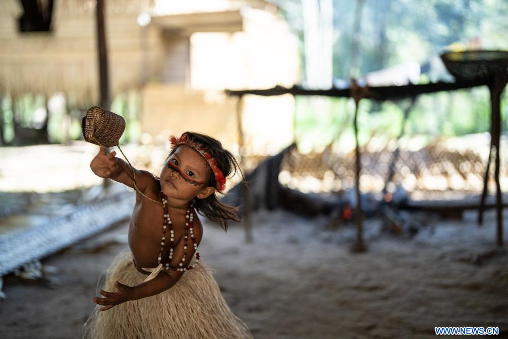MANAOS, 15 marzo, 2024 (Xinhua) -- Imagen del 14 de marzo de 2024 de una niña jugando en un asentamiento indígena cerca de Manaos, capital del estado de Amazonas, Brasil. (Xinhua/Wang Tiancong)