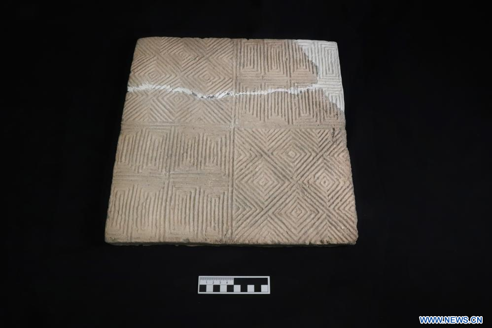 LANZHOU, 22 marzo, 2024 (Xinhua) -- Imagen de una baldosa desenterrada en el sitio de Sijiaoping, en el distrito de Lixian, en la ciudad de Longnan de la provincia de Gansu, en el noroeste de China. Un magnífico complejo de templos ancestrales utilizado para el culto y rituales reales, que data de la dinastía Qin (221-207 a.C.), ha sido descubierto en la provincia de Gansu, en el noroeste de China. (Xinhua/Instituto Provincial de Reliquias Culturales y Arqueología de Gansu)