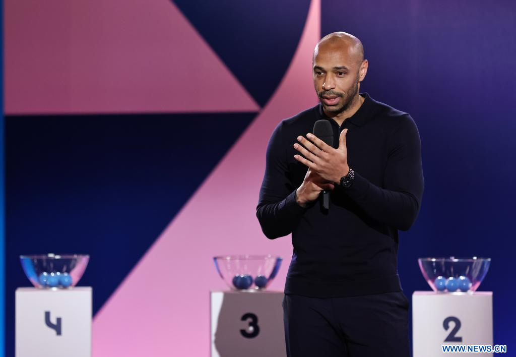 SAINT-DENIS, 21 marzo, 2024 (Xinhua) -- Imagen del 20 de marzo de 2024 del director técnico de la selección olímpica masculina de Francia, Thierry Henry, hablando durante la ceremonia de sorteo para los torneos de fútbol de los Juegos Olímpicos de París 2024, en la sede de París 2024, en Saint-Denis, cerca de París, Francia. (Xinhua/Gao Jing)