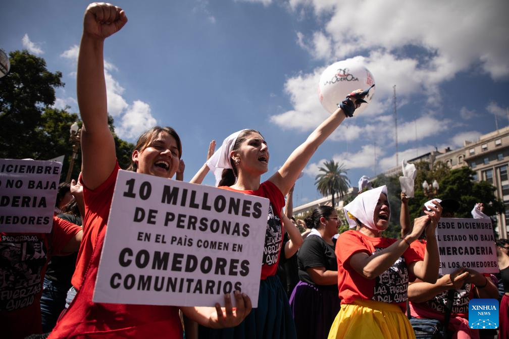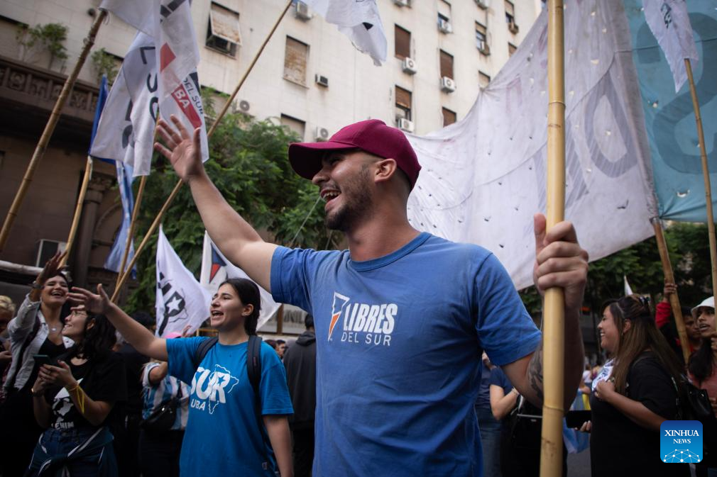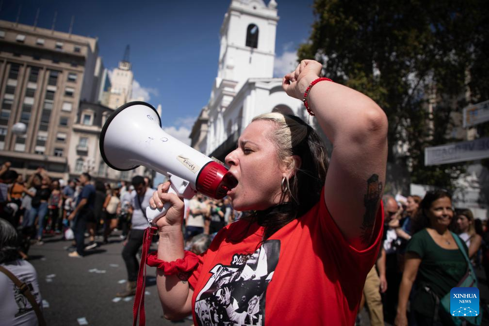 BUENOS AIRES, 24 marzo, 2024 (Xinhua) -- Personas participan en una manifestación en el marco del Día de la Memoria por la Verdad y la Justicia, en la ciudad de Buenos Aires, capital de Argentina, el 24 de marzo de 2024. (Xinhua/Martín Zabala)