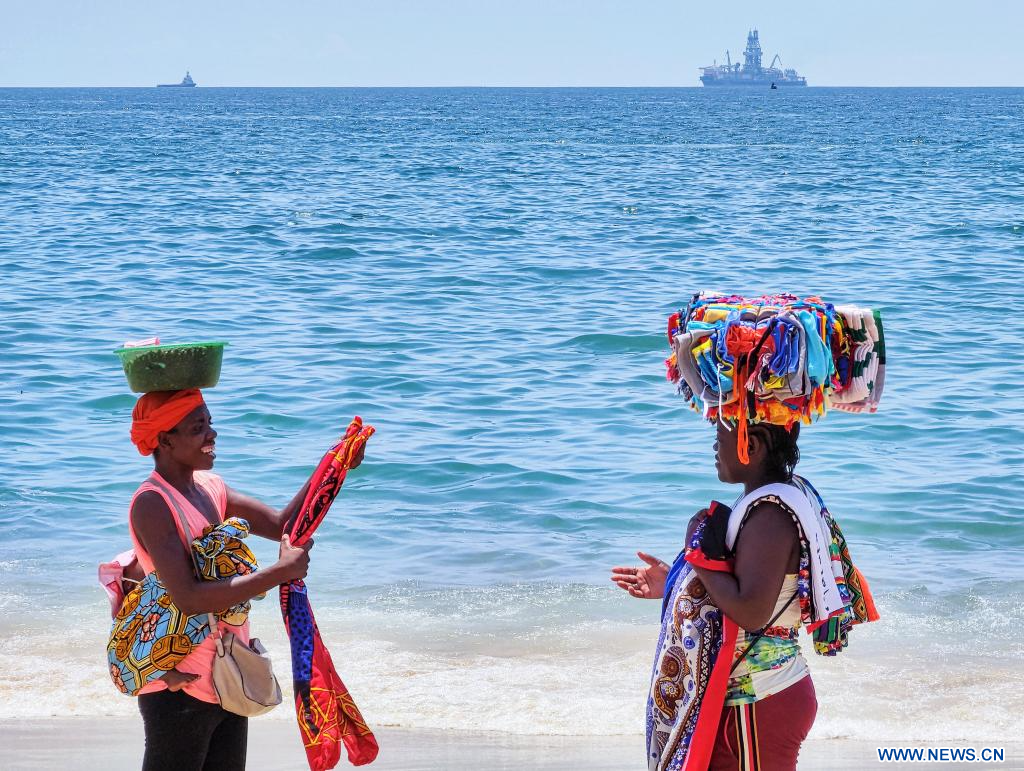 LUANDA, 13 marzo, 2024 (Xinhua) -- Imagen del 9 de marzo de 2024 de vendedoras conversando en la playa, en Luanda, capital de Angola. (Xinhua/Li Yahui)