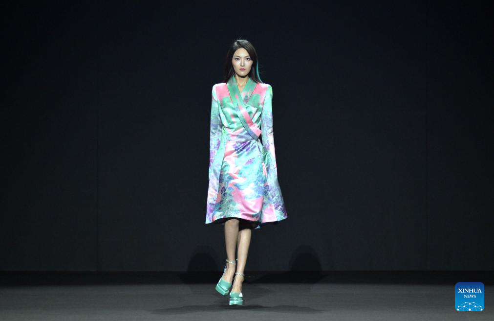 BEIJING, 24 marzo, 2024 (Xinhua) -- Un modelo presenta una creación de BOTAO durante la Semana de la Moda de China Otoño/Invierno 2024, en Beijing, capital de China, el 24 de marzo de 2024. (Xinhua/Cai Yang)