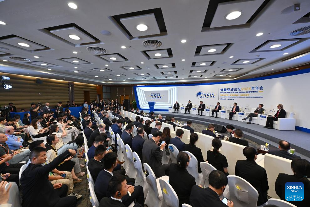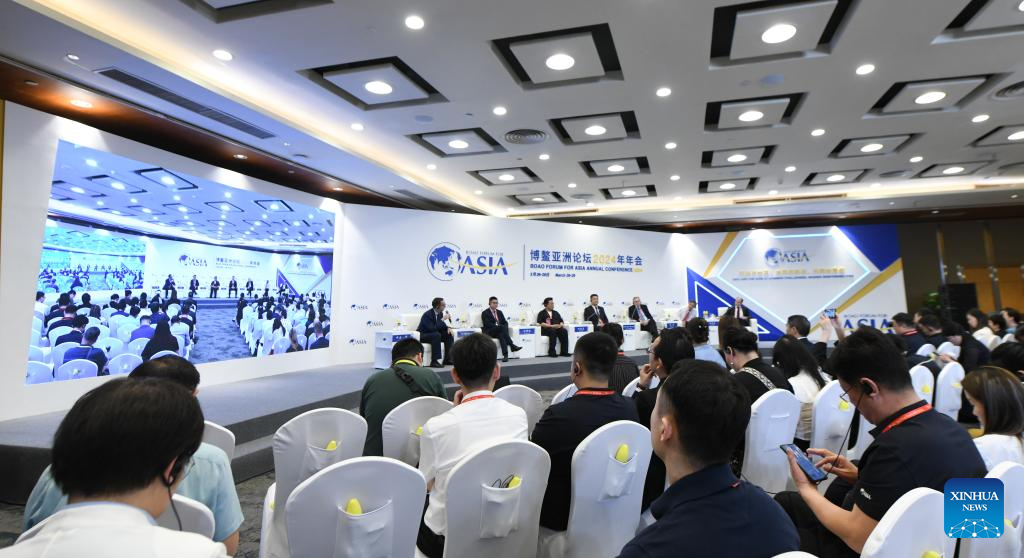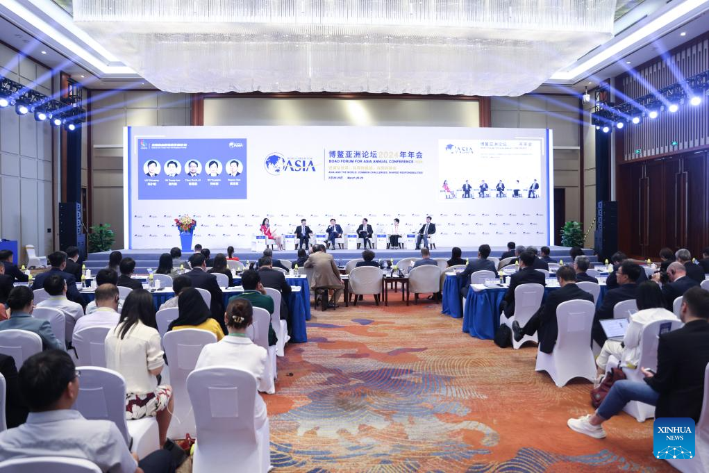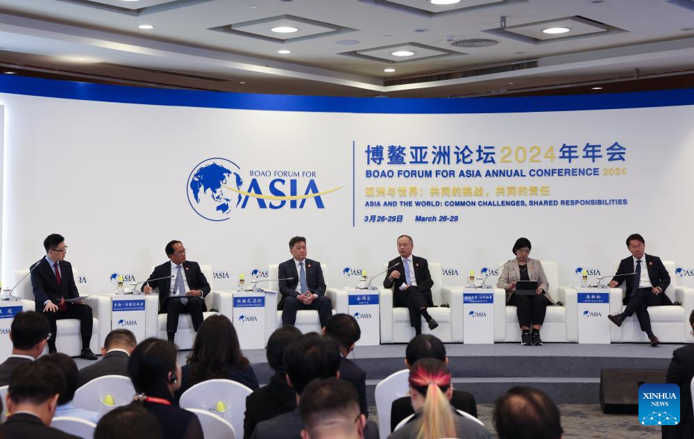 BOAO, 27 marzo, 2024 (Xinhua) -- Un panel de discusión con el tema "Hacer que las Empresas sean más Innovadoras" se lleva a cabo durante la Conferencia Anual 2024 del Foro de Boao para Asia (FBA), en Boao, en la provincia de Hainan, en el sur de China, el 27 de marzo de 2024. (Xinhua/Yang Guanyu)