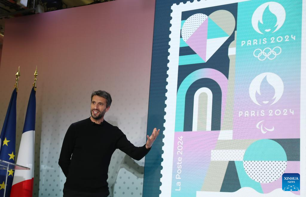 PARIS, 27 marzo, 2024 (Xinhua) -- Imagen del 26 de marzo de 2024 de Tony Estanguet, presidente del Comité Organizador de París 2024, asistiendo a la ceremonia de develación de la estampilla oficial de los Juegos Olímpicos y Paralímpicos de París 2024 en el Museo del Correo Francés, en París, Francia. Inspirándose en la identidad visual de los Juegos Olímpicos de París, la estampilla destaca lugares icónicos como la Torre Eiffel y el río Sena, con elementos deportivos de pistas de atletismo y rebotes de pelota en ella. La estampilla tiene acabados excepcionales con estampado en caliente. (Xinhua/Gao Jing)