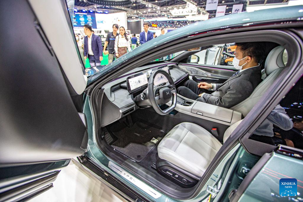 BANGKOK, 27 marzo, 2024 (Xinhua) -- Un visitante experimenta un Xpeng P7i durante el 45° Salón Internacional del Automóvil de Bangkok, en Bangkok, Tailandia, el 27 de marzo de 2024. El 45° Salón Internacional del Automóvil de Bangkok comenzó aquí el miércoles y durará hasta el 7 de abril. (Xinhua/Wang Teng)