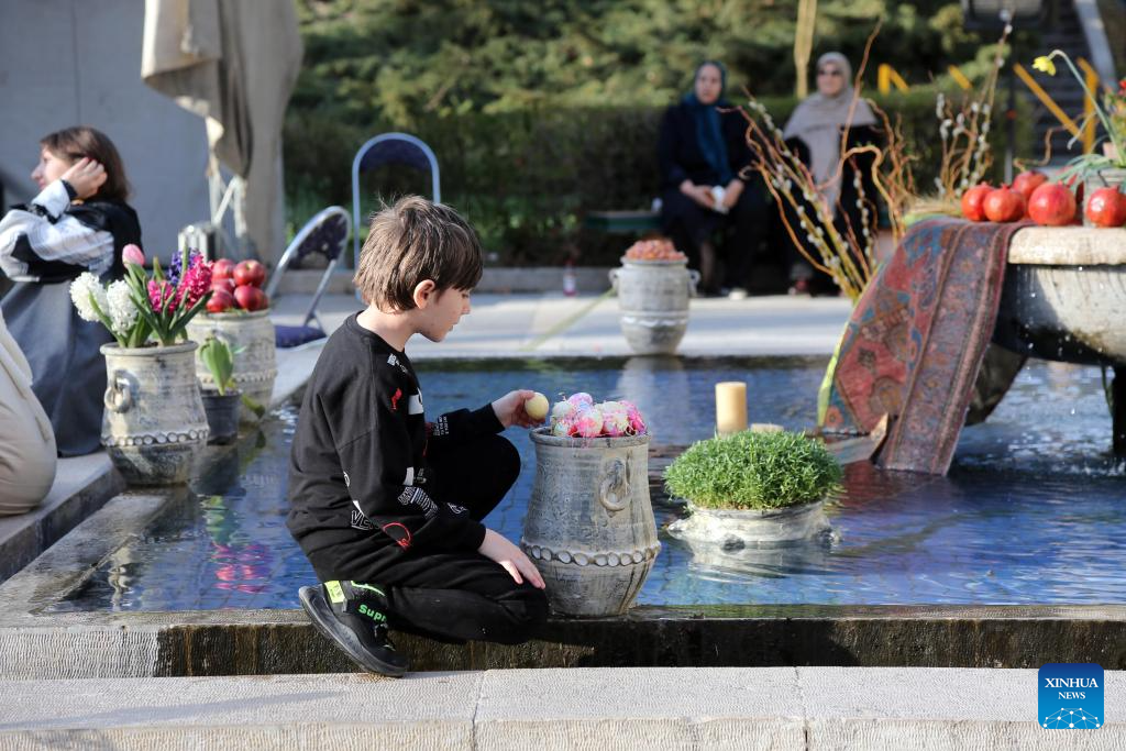 TEHERAN, 27 marzo, 2024 (Xinhua) -- Imagen del 26 de marzo de 2024 de un niño observando huevos coloridos exhibidos por el Nowruz, el Año Nuevo iraní, afuera del Palacio de Niavaran, en el norte de Teherán, capital de Irán. Personas visitaron el Palacio de Niavaran durante las vacaciones de año nuevo del Nowruz, que cae el 20 de marzo este año. (Xinhua/Shadati)