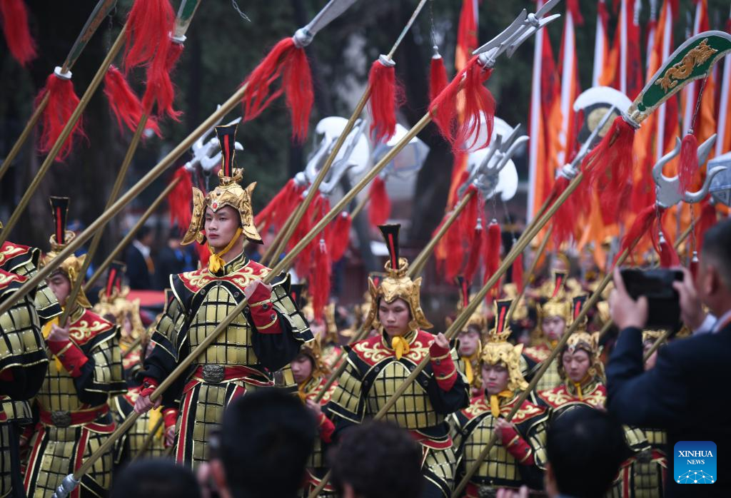 XI'AN, 4 abr (Xinhua) -- Más de 400 chinos, incluidos residentes en el extranjero, asistieron hoy jueves a una ceremonia en la provincia noroccidental china de Shaanxi para rendir homenaje a Huangdi, también conocido como el Emperador Amarillo.
