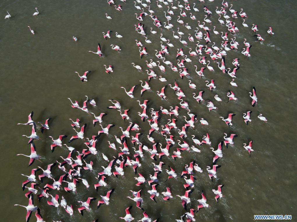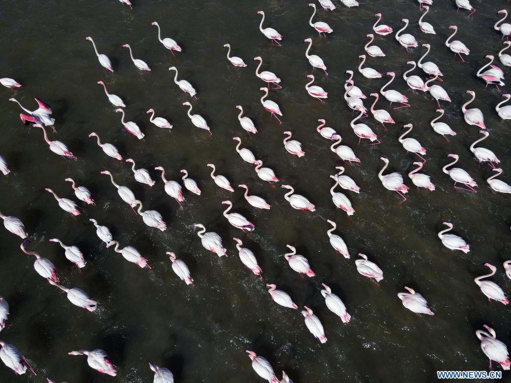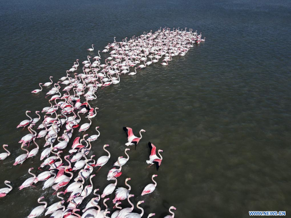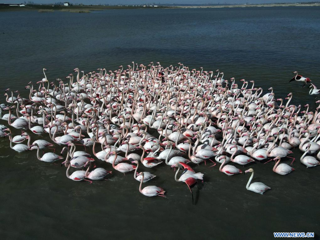 ANKARA, 25 marzo, 2024 (Xinhua) -- Imagen del 24 de marzo de 2024 de flamencos vistos en el lago de la presa Selkapini, en Ankara, Turquía. (Xinhua/Mustafa Kaya)