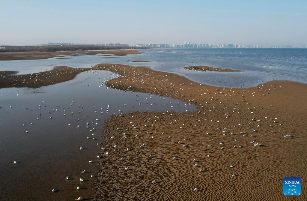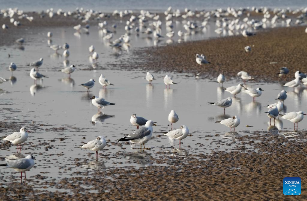 QINHUANGDAO, 1 abril, 2024 (Xinhua) -- Bandadas de aves migratorias han hecho escala en este humedal recientemente. (Xinhua/Yang Shiyao)