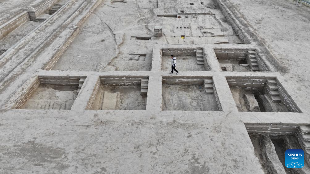 XIONG'AN, 1 abril, 2024 (Xinhua) -- Vista aérea tomada con un dron el 26 de marzo de 2024 del sitio de las ruinas de Nanyang, en la Nueva Area de Xiong'an, en la provincia de Hebei, en el norte de China. (Xinhua/Mu Yu)
