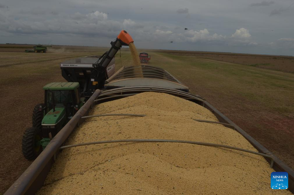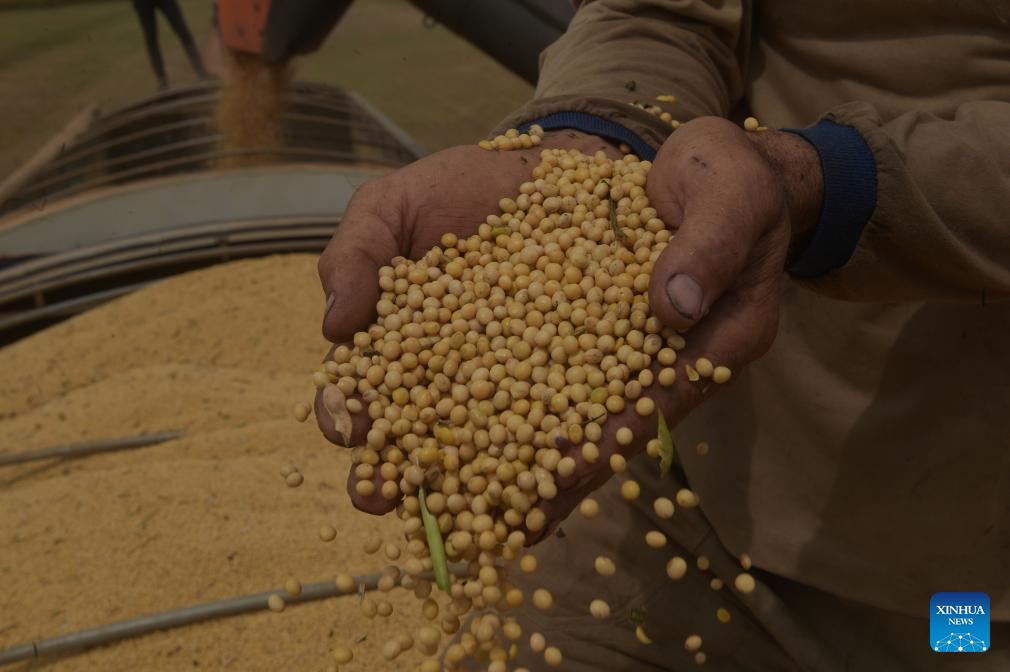 BAHIA, 1 abril, 2024 (Xinhua) -- Imagen del 1 de abril de 2024 de frijoles de soja en una plantación en una granja, en el municipio de Luís Eduardo Magalhaes, en el estado de Bahía, Brasil. (Xinhua/Lucio Tavora)