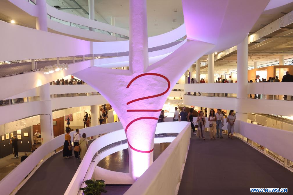 SAO PAULO, 4 abril, 2024 (Xinhua) -- Personas asisten a la vigésima edición de la feria de arte SP-Arte, en Sao Paulo, Brasil, el 4 de abril de 2024. (Xinhua/Rahel Patrasso)