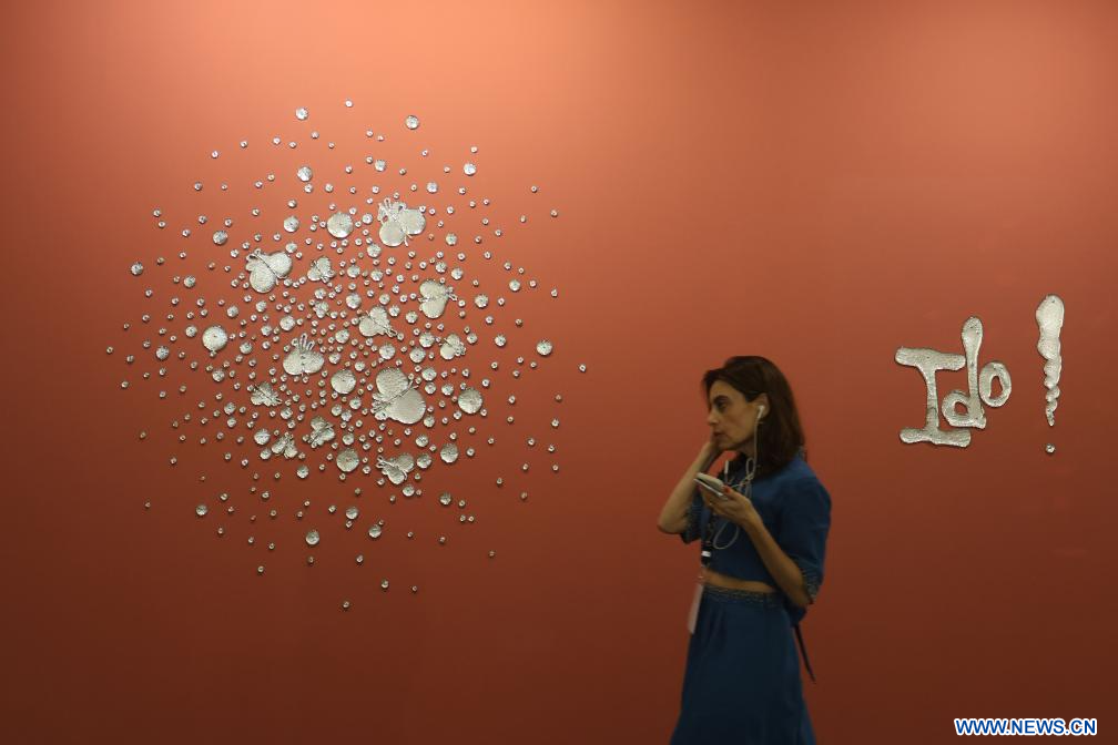 SAO PAULO, 4 abril, 2024 (Xinhua) -- Una mujer asiste a la vigésima edición de la feria de arte SP-Arte, en Sao Paulo, Brasil, el 4 de abril de 2024. (Xinhua/Rahel Patrasso)