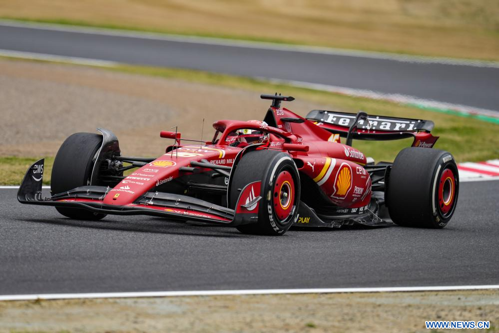 SUZUKA, 5 abril, 2024 (Xinhua) -- El piloto monegasco de la escudería Ferrari, Charles Leclerc, conduce su automóvil durante la sesión de práctica del Gran Premio de Japón de Fórmula Uno, en Suzuka, Japón, el 5 de abril de 2024. (Xinhua/Zhang Xiaoyu)