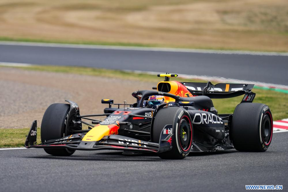 SUZUKA, 5 abril, 2024 (Xinhua) -- El piloto mexicano de la escudería Red Bull, Sergio Pérez, conduce su automóvil durante la sesión de práctica del Gran Premio de Japón de Fórmula Uno, en Suzuka, Japón, el 5 de abril de 2024. (Xinhua/Zhang Xiaoyu)
