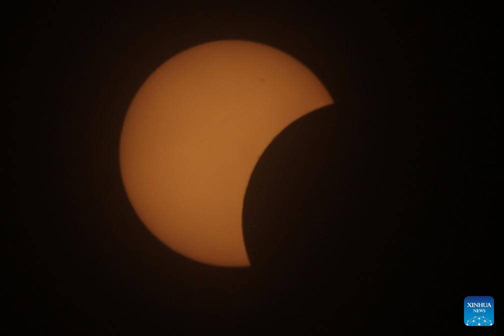 SAN SALVADOR, 8 abril, 2024 (Xinhua) -- Imagen del 8 de abril de 2024 de un eclipse solar visto desde el Observatorio Micro Macro de la Universidad Don Bosco, en la municipalidad de Soyapango, en el departamento de San Salvador, El Salvador. (Xinhua/Alexander Peña)
