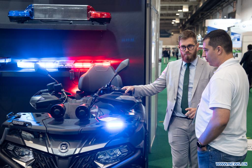 SAO PAULO, 5 abril, 2024 (Xinhua) -- Imagen del 4 de abril de 2024 de un empleado presentando un vehículo policial a una visitante en la Exposición Latinoamericana de Espacio y Defensa (LAAD, por sus siglas en inglés) 2024, en Sao Paulo, Brasil. La exposición LAAD 2024 de tres días de duración llegó a su fin en Sao Paulo el jueves. Más de 150 expositores de 20 países y regiones participaron en la exposición. (Xinhua/Wang Tiancong)