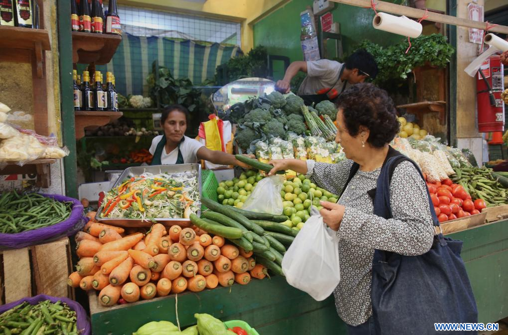 LIMA, 25 marzo, 2024 (Xinhua) -- Una mujer compra en un puesto de verduras en el mercado "Virgen de Las Mercedes", en el distrito de Lurín, en Lima, Perú, el 25 de marzo de 2024. (Xinhua/Mariana Bazo)