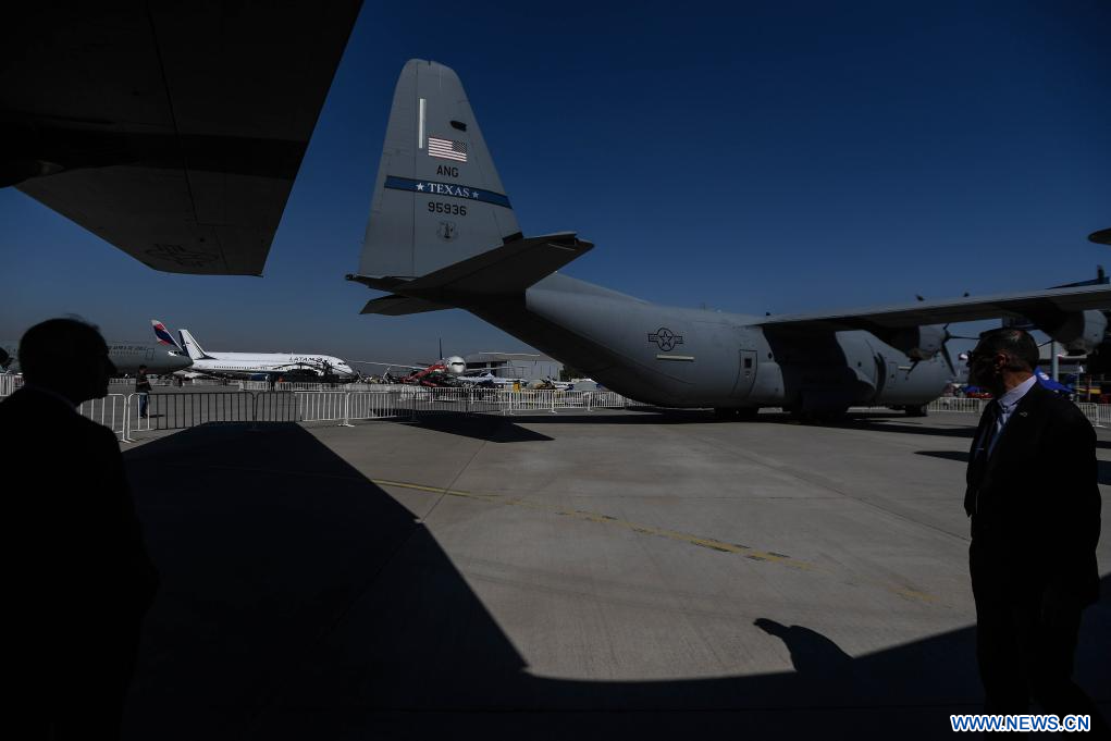 SANTIAGO, 10 abril, 2024 (Xinhua) -- Imagen del 9 de abril de 2024 de personas observando aviones en la Feria Internacional del Aire y del Espacio (FIDAE) 2024 de Chile, en Santiago, capital de Chile. La FIDAE 2024 de Chile, la principal exposición aeroespacial, de defensa y seguridad de América Latina, arrancó el martes, con 47 países participantes y 105 naves en exhibición, en su primera edición normalizada desde 2018. (Xinhua/Jorge Villegas)