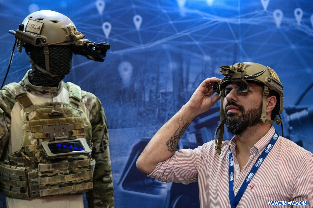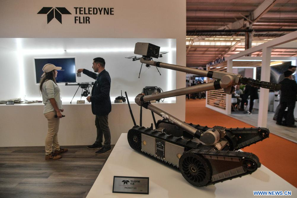SANTIAGO, 10 abril, 2024 (Xinhua) -- Imagen del 9 de abril de 2024 de un hombre visitando un estand en la Feria Internacional del Aire y del Espacio (FIDAE) 2024 de Chile, en Santiago, capital de Chile. La FIDAE 2024 de Chile, la principal exposición aeroespacial, de defensa y seguridad de América Latina, arrancó el martes, con 47 países participantes y 105 naves en exhibición, en su primera edición normalizada desde 2018. (Xinhua/Jorge Villegas)