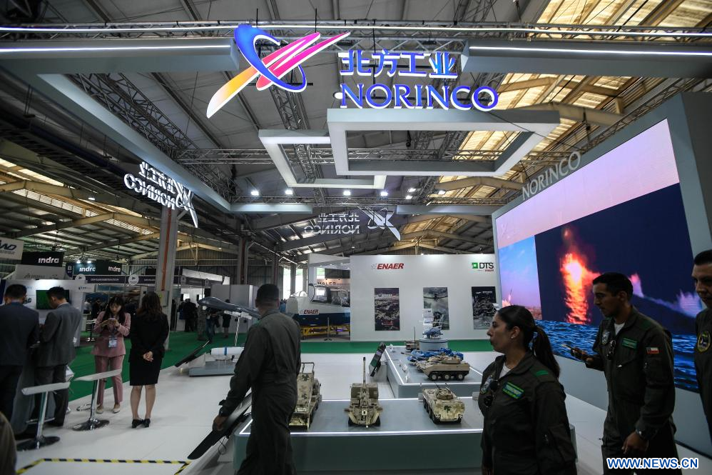 SANTIAGO, 10 abril, 2024 (Xinhua) -- Imagen del 9 de abril de 2024 de personas visitando un estand de China en la Feria Internacional del Aire y del Espacio (FIDAE) 2024 de Chile, en Santiago, capital de Chile. La FIDAE 2024 de Chile, la principal exposición aeroespacial, de defensa y seguridad de América Latina, arrancó el martes, con 47 países participantes y 105 naves en exhibición, en su primera edición normalizada desde 2018. (Xinhua/Jorge Villegas)